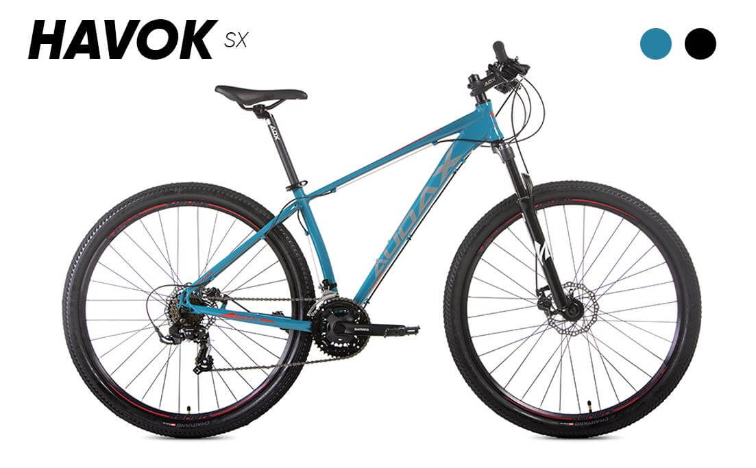 - Quadro: HAVOK SX MTB 6061 T6 29 | HAVOK SX MTB 6061 T6 29 cabeamento interno - SUSPENSÃO:Suspensão 29 , mecânica, com trava no guidão e eixo 9mm - CAIXA DE DIREÇÃO: Semi-integrada C/ ROLAMENTO - CÂMBIO DIANTEIRO: Shimano Tourney TY 300 - CÂMBIO TRASEIRO: Shimano TY200 Tourney, 6/7 velocidades - CORRENTE: Index de aço, 7/8 velocidades - MOVIMENTO CENTRAL:Selado BB-UN100 124.5mm - PEDIVELA: Shimano Tourney TY301 42/34/24D 175mm - RODA LIVRE: 7v INDEX 13-28 D - PEDAIS: VPE-899 9/16 em plástico - MESA Alumínio: ADX 31.8x90mm ±10° - GUIDÃO Alumínio: ADX 31.8x700mm - ALAVANCA DO CÂMBIO: ADX AL-M1003X7V Index ou Shimano SL-M315 3x7V - MANOPLA: TPR 130mm, com abraçadeira em alumímio - FREIO: Freio mecânico | SHIMANO À DISCO MECÂNICO BR-TX805, c/ ALAVANCAS EM ALUM. SYPO | BOLIDS À DISCO HIDRÁULICO - ABRAÇADEIRA: Alumínio 31.8mm - SELIM: MACH 2 RVS Preto/Branco / ADX BY DDK D5152 TRILHO ACO PRETO - CANOTE DO SELIM: ADX Alumínio 27,2 x 350mm - RODAS: AROS 29 - PNEUS: Pneu 29x2.10 H5129 Skin Wall 52-622 Preto